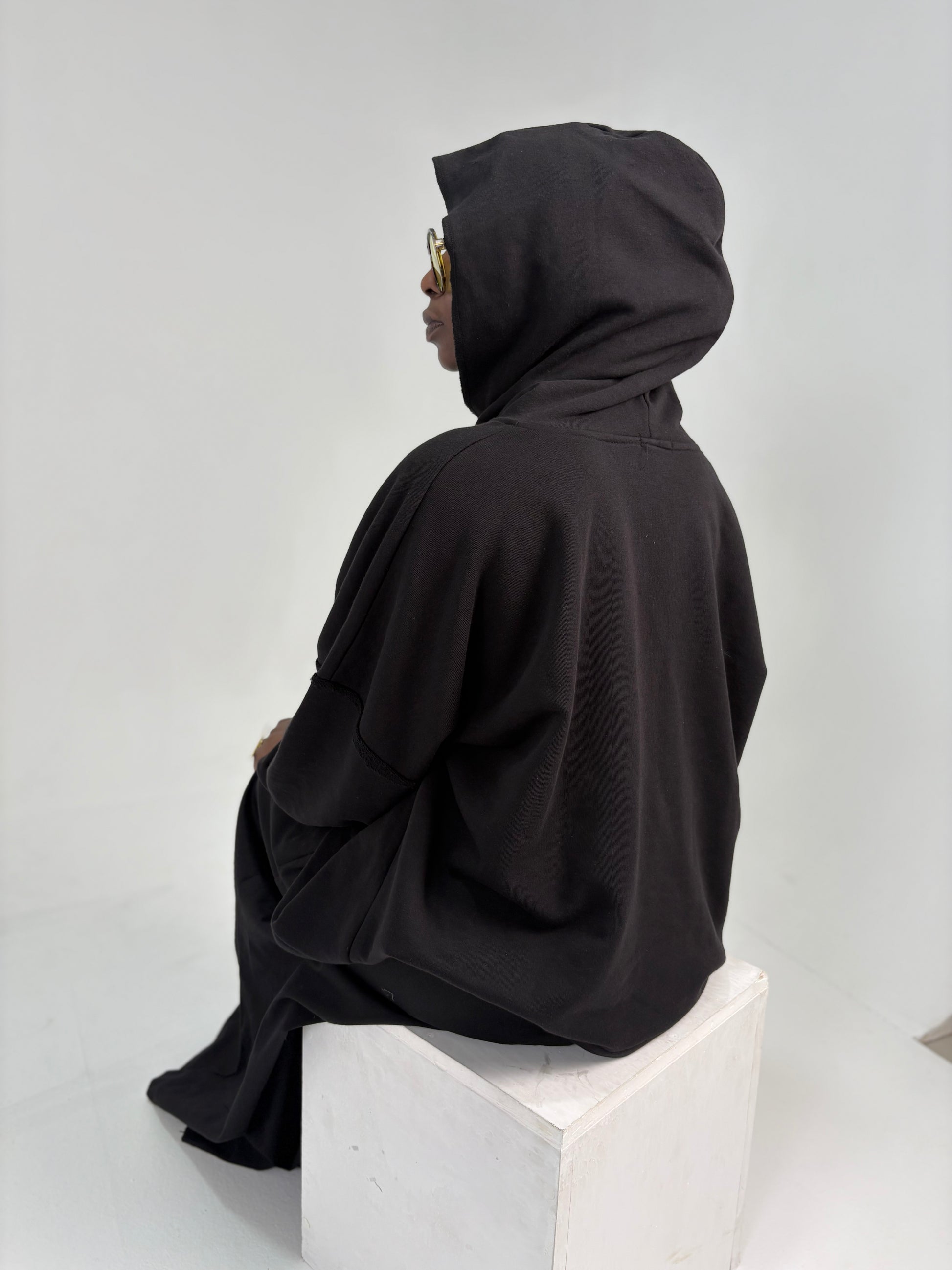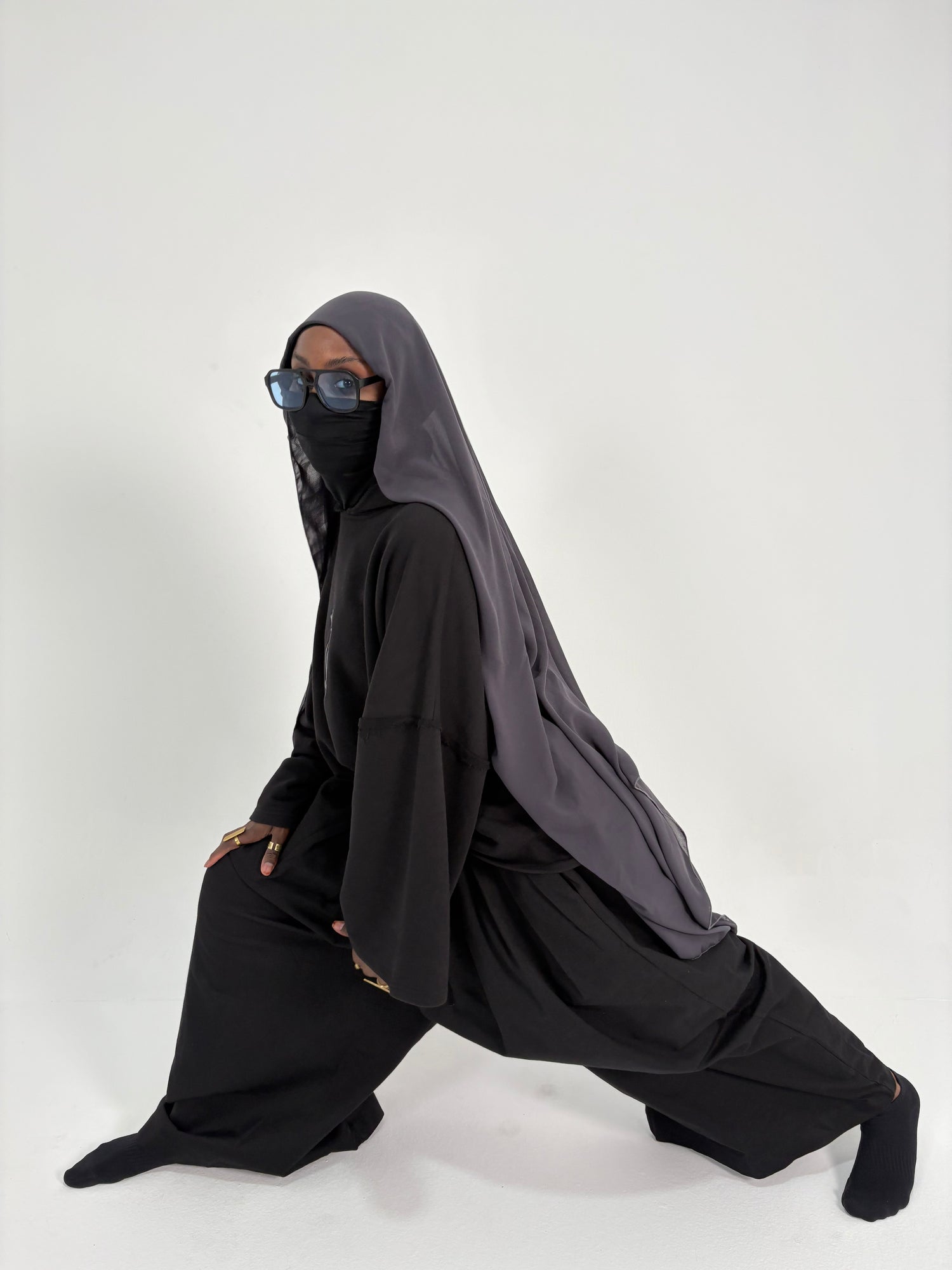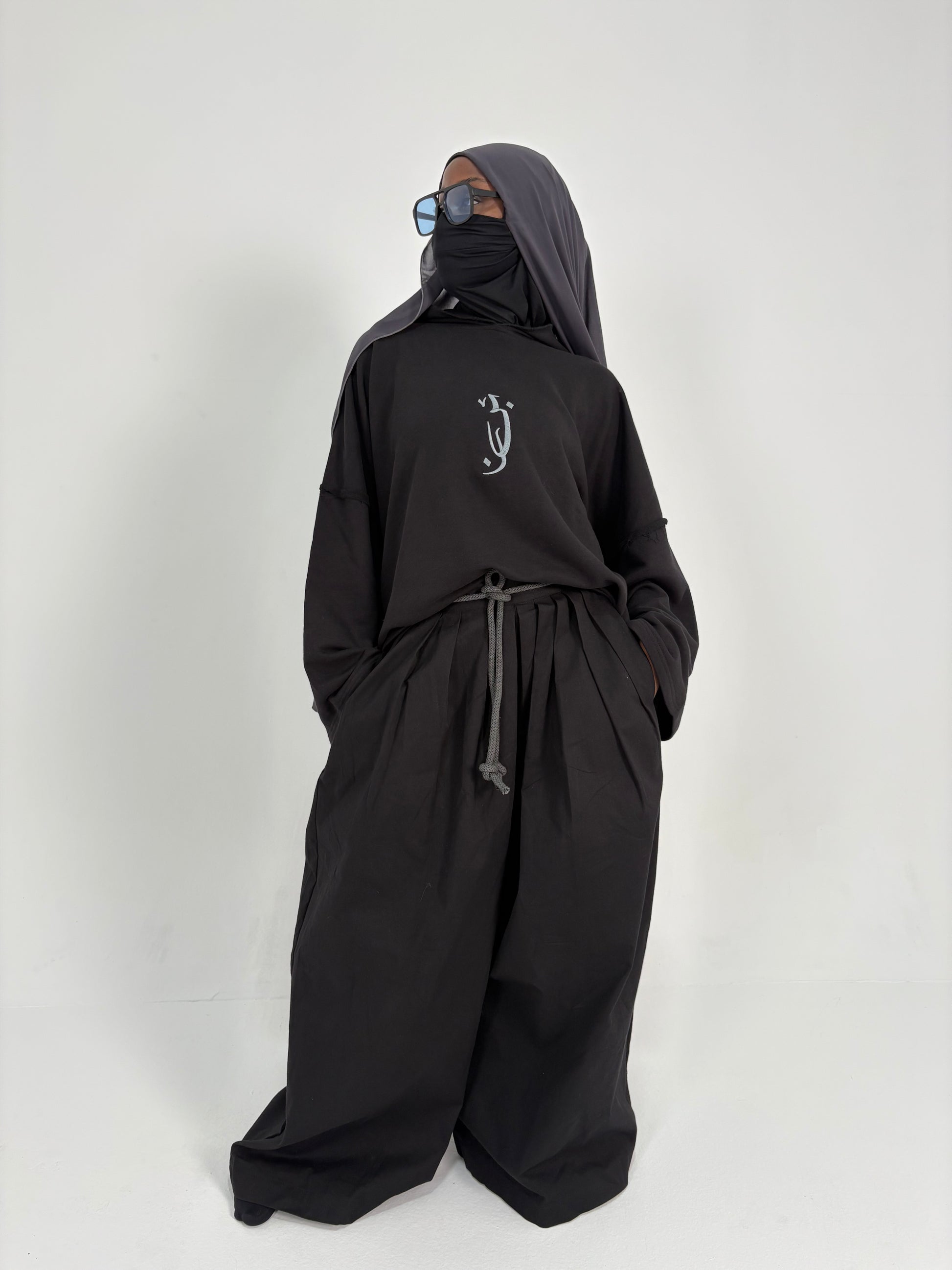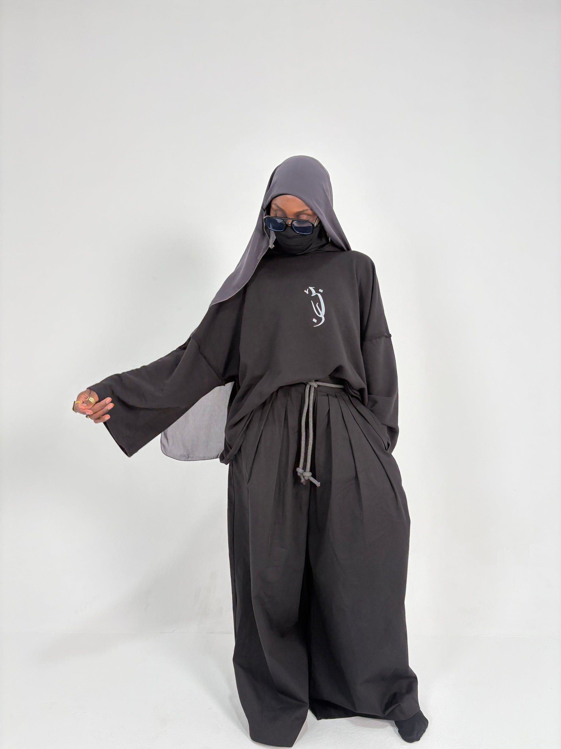 Il se compose d’un sweat à capuche en molleton léger, doux et agréable à porter, et d’un pantalon ample inspiré des hakamas japonais, pour une silhouette fluide, élégante et mastour.