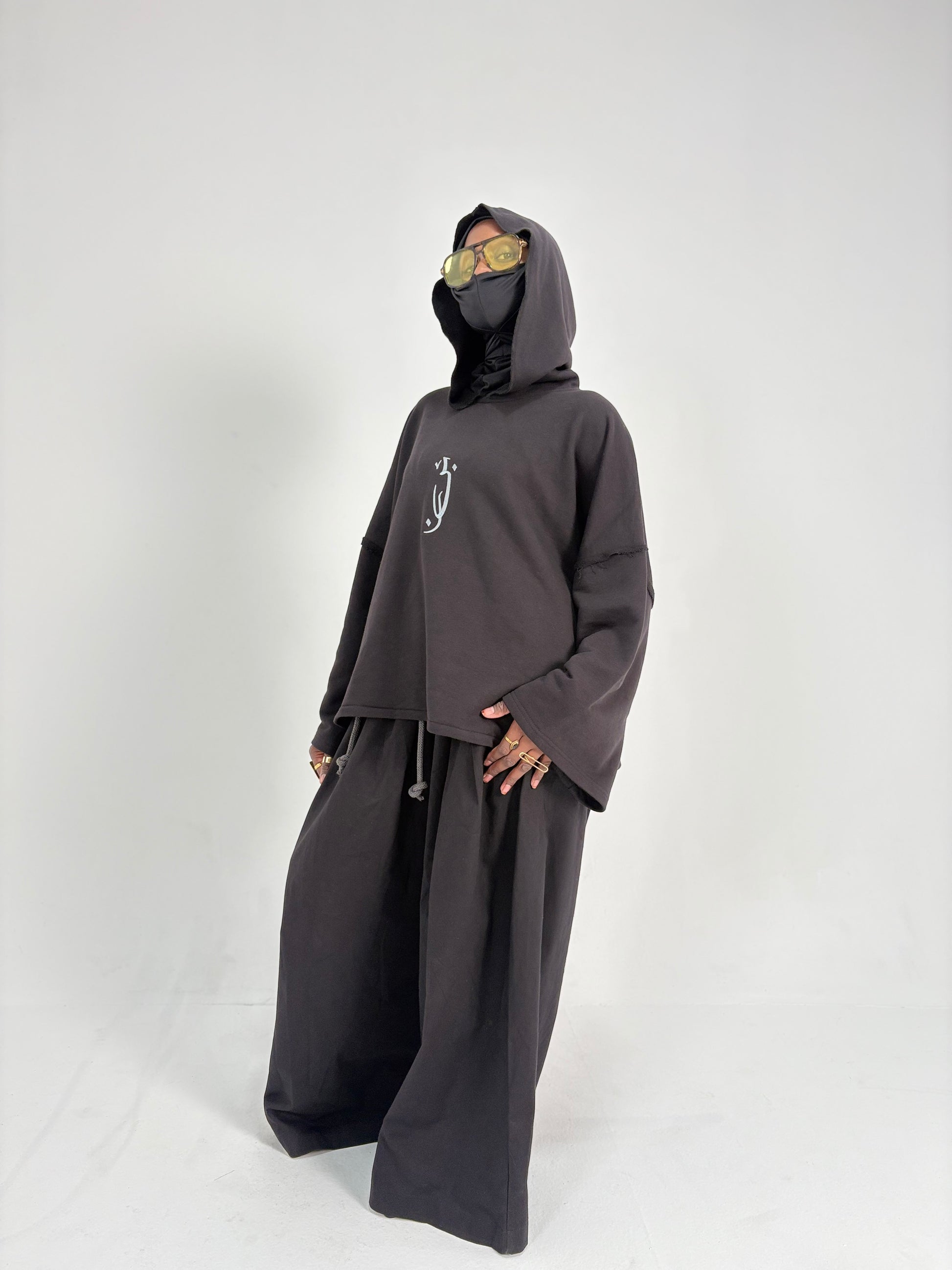 Il se compose d’un sweat à capuche en molleton léger, doux et agréable à porter, et d’un pantalon ample inspiré des hakamas japonais, pour une silhouette fluide, élégante et mastour