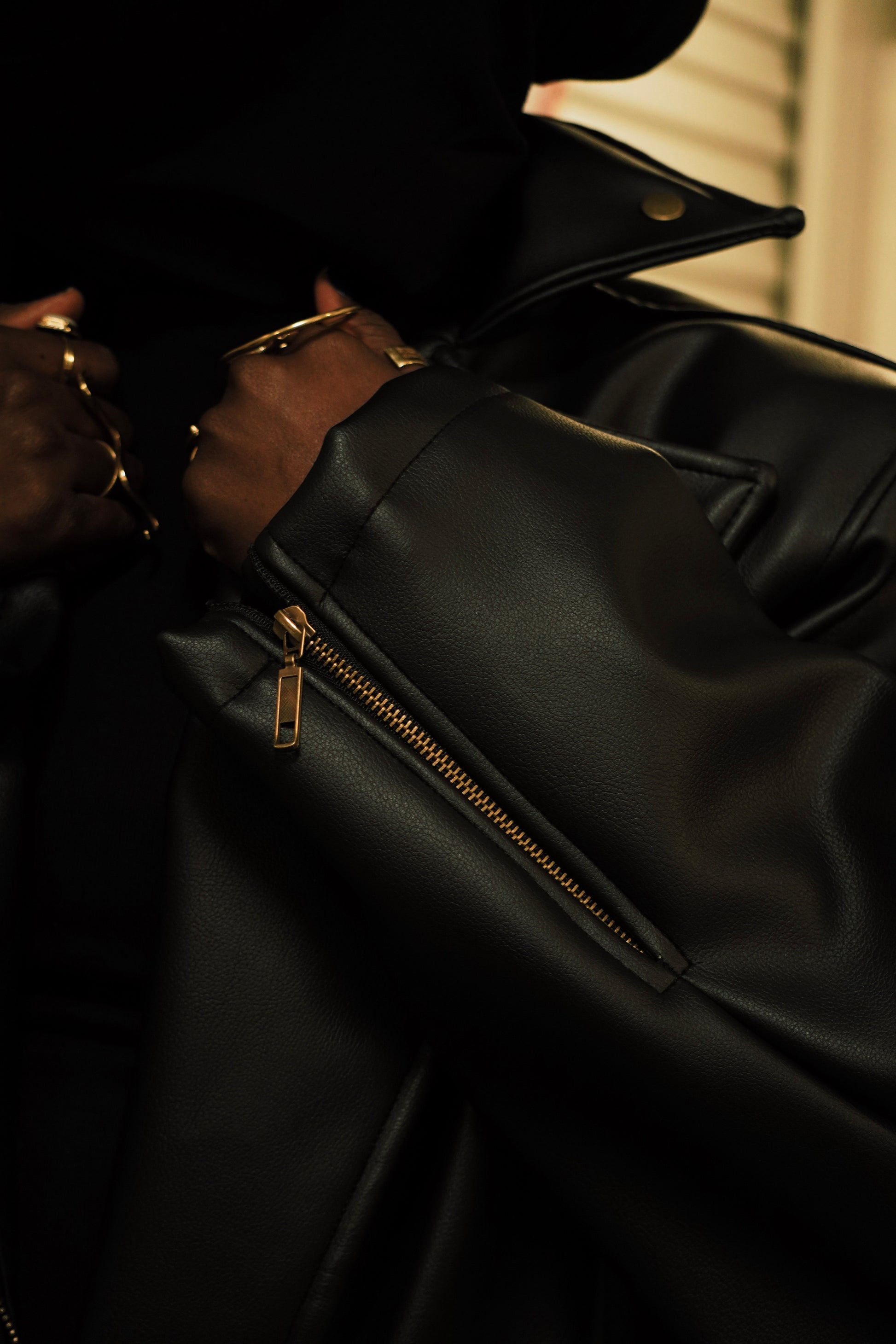 The Perfecto by Soutoura réinvente le blouson biker en cuir iconique à travers une silhouette longue, moderne et élégante. Confectionné en polyuréthane de haute qualité (cuir vegan), il offre un rendu , structuré classe et de caractère. Imposer-vous juste par votre présence avec le perfecto.